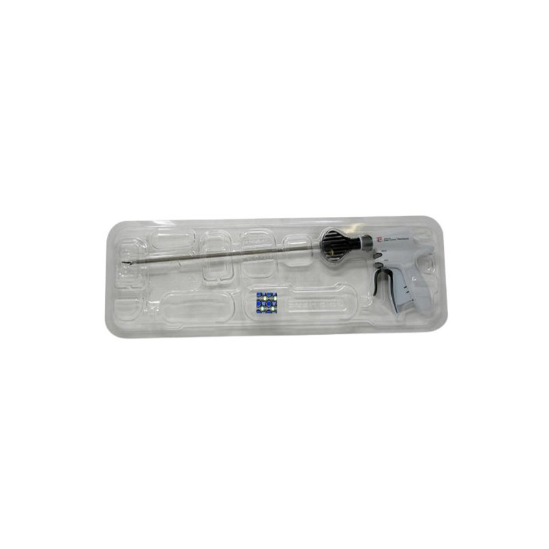 El dispositivo se utiliza en intervenciones quirurgicas endoscópicas para la fijación prostético y la aproximación de tejido en diversas especialidades quirurgicas, como la reparacion de hernias.